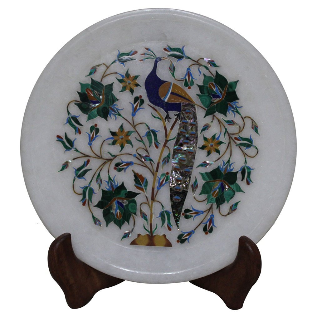Be the first to review “White Marble Plate Beautiful Peacock Stone Work”